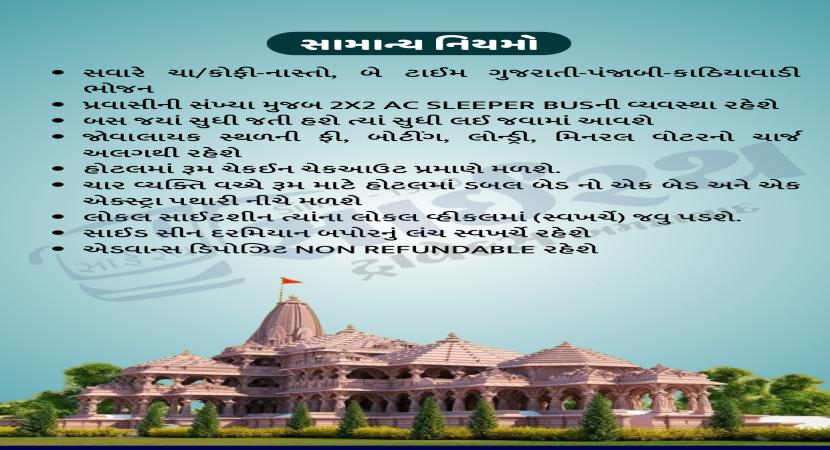 Depart to Ayodhya by bus. Evening arrival, check-in, and rest. Night Stay: Ayodhya